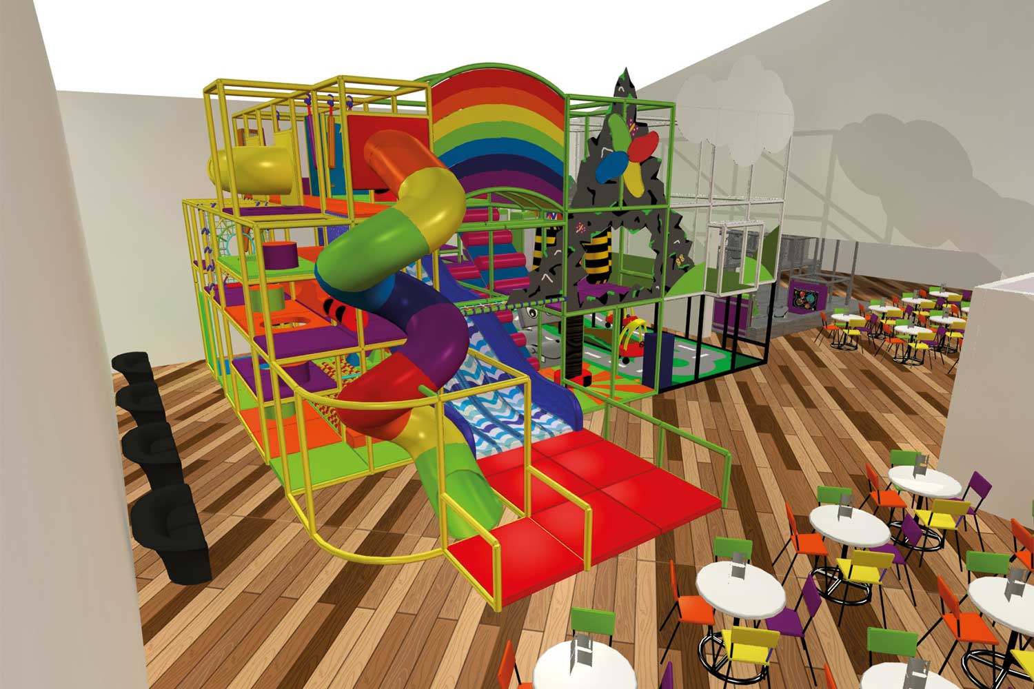 A site survey took place and a design was presented with a modern, functional adventure play frame. On top of this we incorporated two large open areas. A fully enclosed Sports area and a Cart Track. Both of these were important to carl as he wanted to add something a little different for the kids. The centre also held a more up to date Baby and Toddler area. This system would stay but a relocation of part of the frame was needed to allow access to the toilet and new kitchen area. On top of this a brand-new Baby area was needed with fresh, sensory features and soft toys.