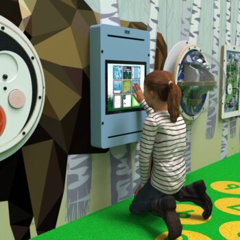 The Blue Games Wall 17 is an interactive play system with a 17-inch screen, designed for wall mounting on a play fence or play system. Its modern, safe, and durable blue housing provides a vibrant and engaging setup for children to explore and play.