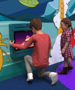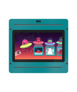 The Green Wall Mounted Games Tablet 21 is an interactive play system featuring a 21-inch touchscreen, designed to be mounted on a wall, play fence, or play system. Its modern and durable green housing makes it a great addition to any play area.