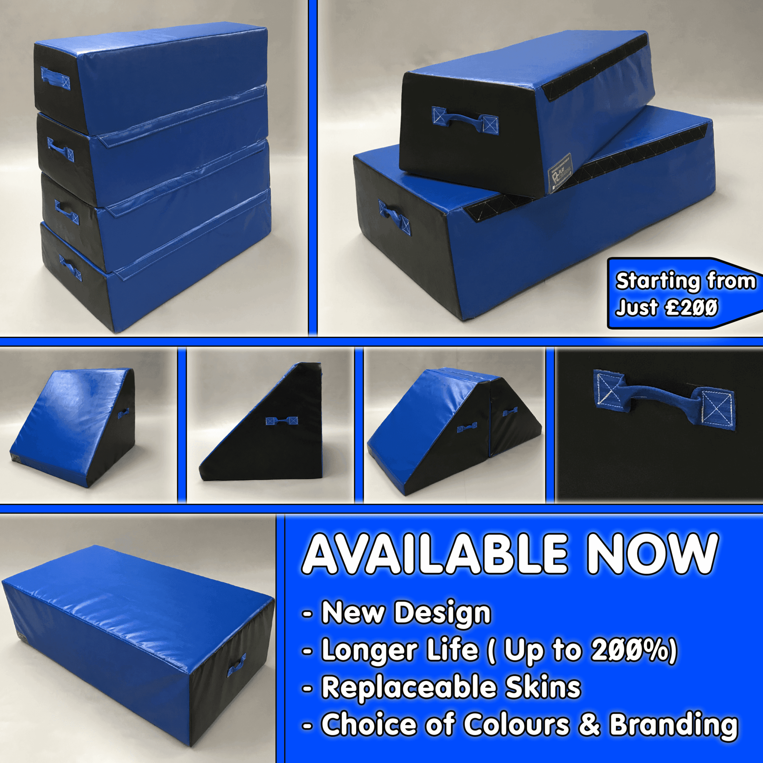 Parkour popularity has grown tremendously over the past 10 years and with a number of training facilities opening to the public we have seen a huge increase in demand for specific training equipment. As parkour is sometimes seen to be similar to other movement sports, gym owners and coaches have had to improvise and adapt to using out of date equipment. Other solutions have also been tried such as foam filled vaults and blocks. Of course, over time these can rip and deteriorate over a short period of time. Our range gives both strength and safety to your training. With a specially designed inner carcass we can now guarantee a longer life for your equipment. Although this does make the equipment slightly heavier than complete foam, we know that a rigid but soft surface is more important when learning fundamental skills. All our equipment comes with your choice of colours at no additional cost.