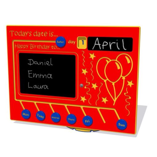 This next generation Today’s Date is… Panel has loads of cool new features in one panel. There are7 slidingday discs, a back-mounted rotating date disc and a small chalkboard panel to write the month on. Not only that, this panel features a second larger chalkboard panel, where the children (or teachers) can write down whose birthday it is on that day. All the sliding discs move easily in channels on the panel which means there are no loose parts to worry about losing or have to put away each night. Our interactive features are a fantastic way to incorporate the learning experience into play. They promote confidence, control and creativity with the added bonus of allowing fundamental developments like hand eye coordination and fine motor skills.