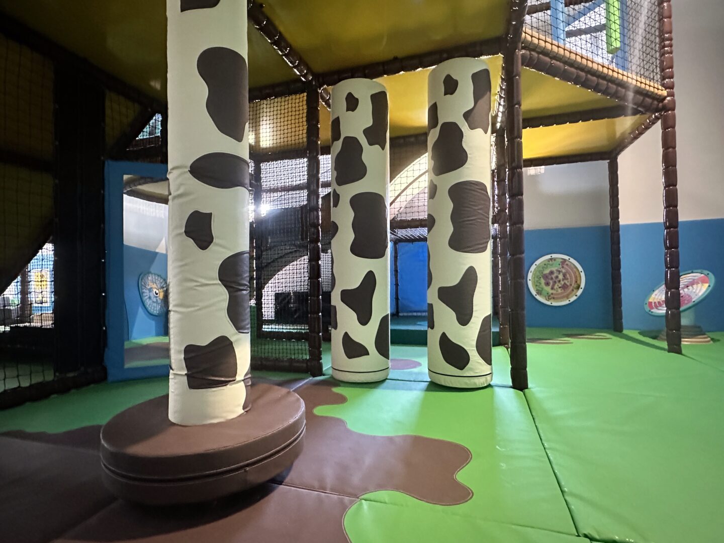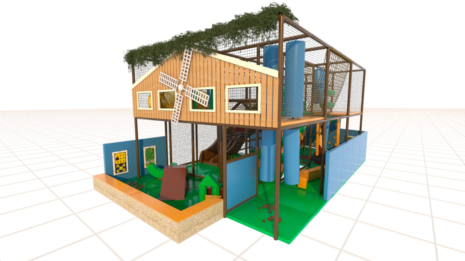 Following the initial consultation, Play Creations collaborated closely with the Barkes family to develop a tailored design brief for a two-level, farm-themed soft play structure. Our detailed building survey ensured the underperforming space was optimized for safety and fun, addressing the challenge of underfloor heating by mounting the soft play frame on a custom timber raft for secure floor fastening. The design incorporated a custom-crafted front facade, featuring a fully interactive windmill, to serve as the centerpiece, reflecting the farm’s rustic charm. The structure was planned to include a dedicated baby area for ages 0-5 and a dynamic junior frame for older children, ensuring inclusivity and excitement for all young explorers.
