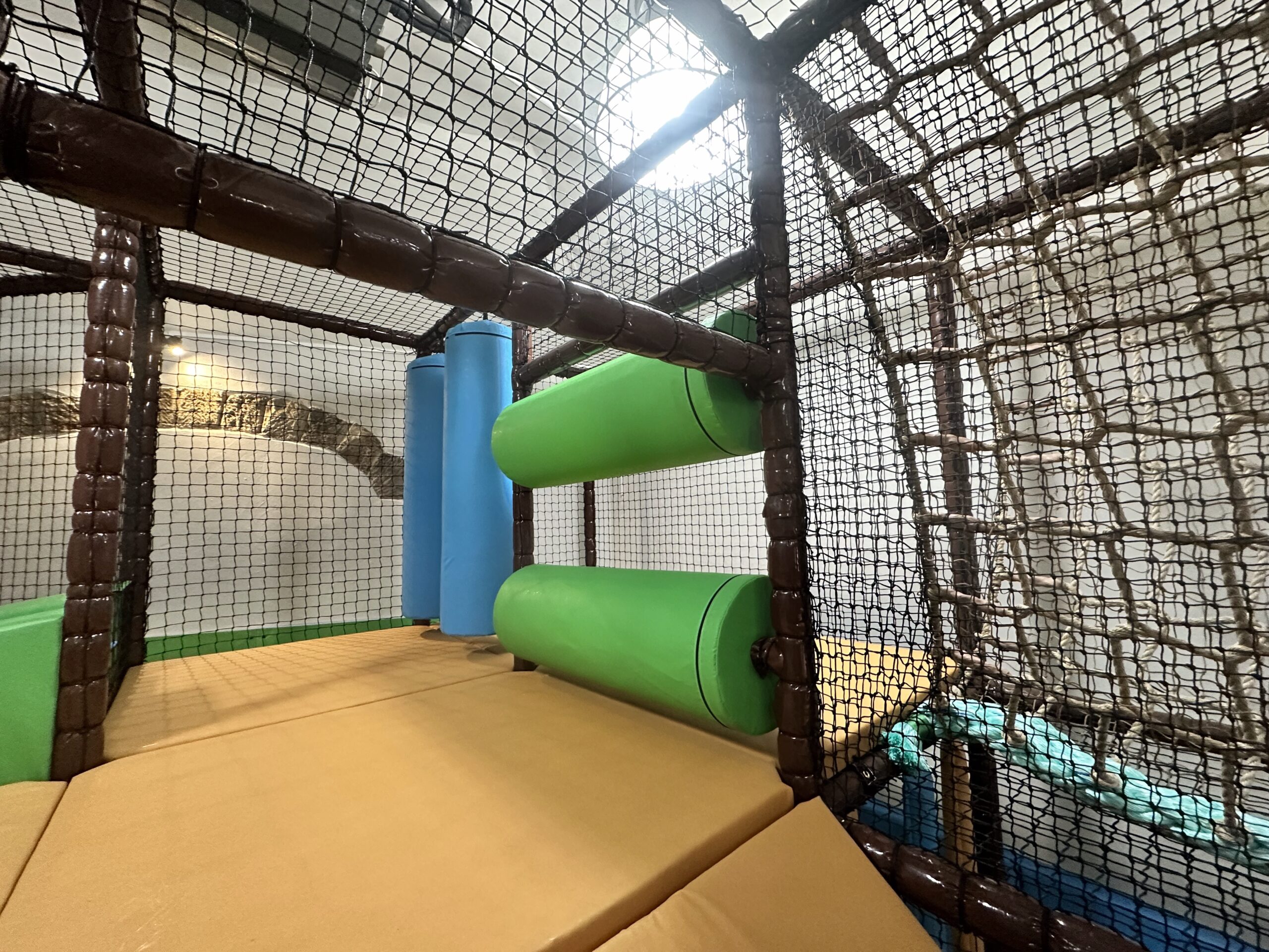 The soft play area was meticulously designed and manufactured by our skilled team using premium, UK-sourced materials. The baby area featured a ball pond spinner, interactive sensory wall games, and soft play toys like cushioned climbing blocks, creating a safe and stimulating space for toddlers. The junior frame boasted balancing beams, interactive wall games, slides, bouncy ball boards, and rope features, with the standout custom facade and working windmill adding an immersive farmyard feel. Our expert team executed a seamless installation in early 2025, ensuring the structure was ready for Thorpe Farm’s grand opening, perfectly integrated into the farm shop’s adjacent building.